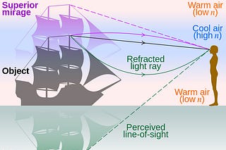 From the beach, you spot a boat on the horizon that appears to hover several feet above the water’s surface.