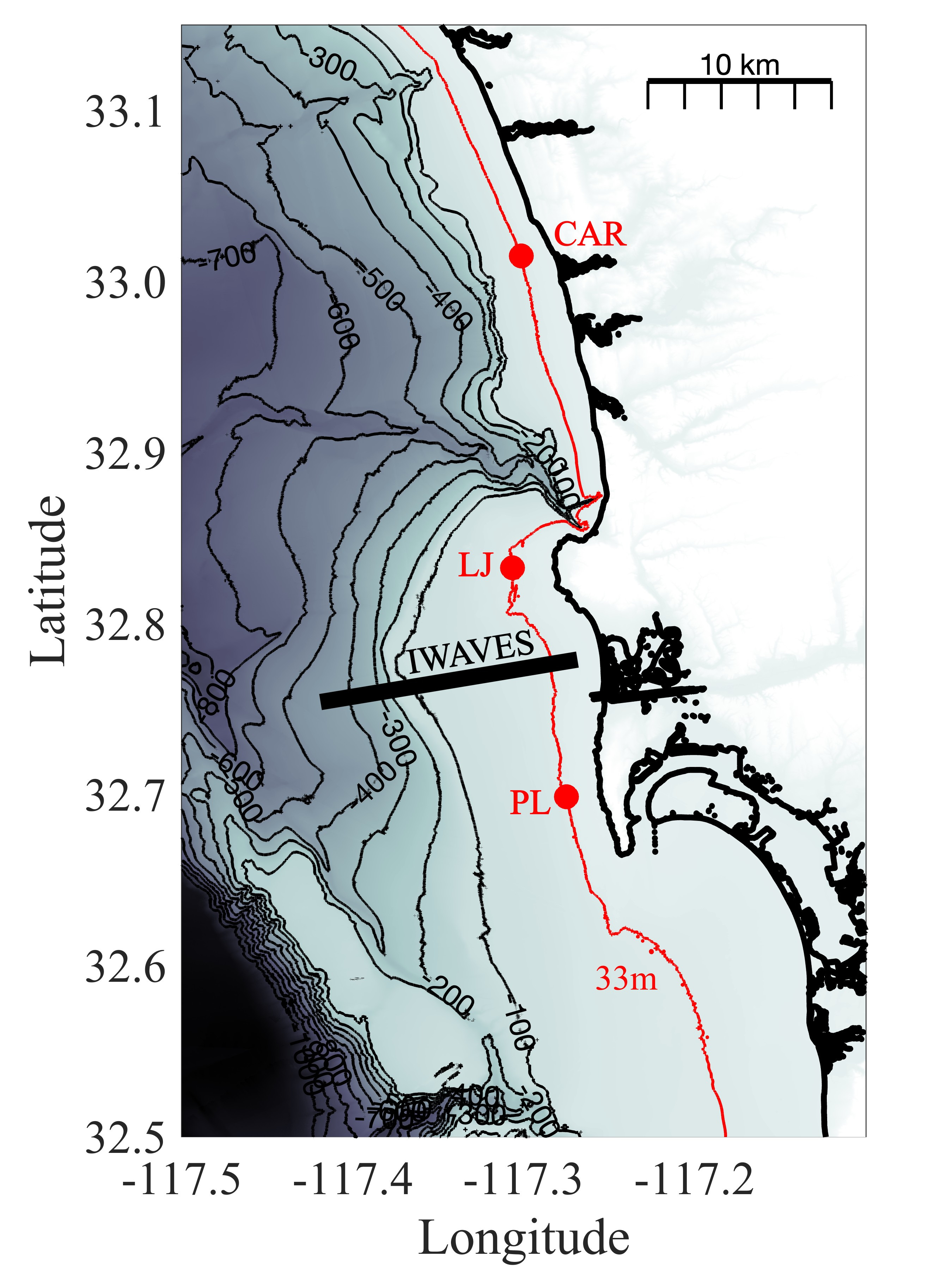 This discovery required seven years of continuous measurements and careful analysis to separate the competing influences. The story of how we figured this out unfolds in data collected by instruments sitting on the seafloor of the inner shelf, recording the effects of waves kilometers offshore and hundreds of meters deep.